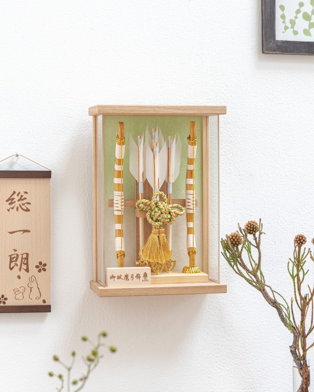 ことの破魔弓は、少しのスペースや壁掛けでも飾れるところも魅力ですね。