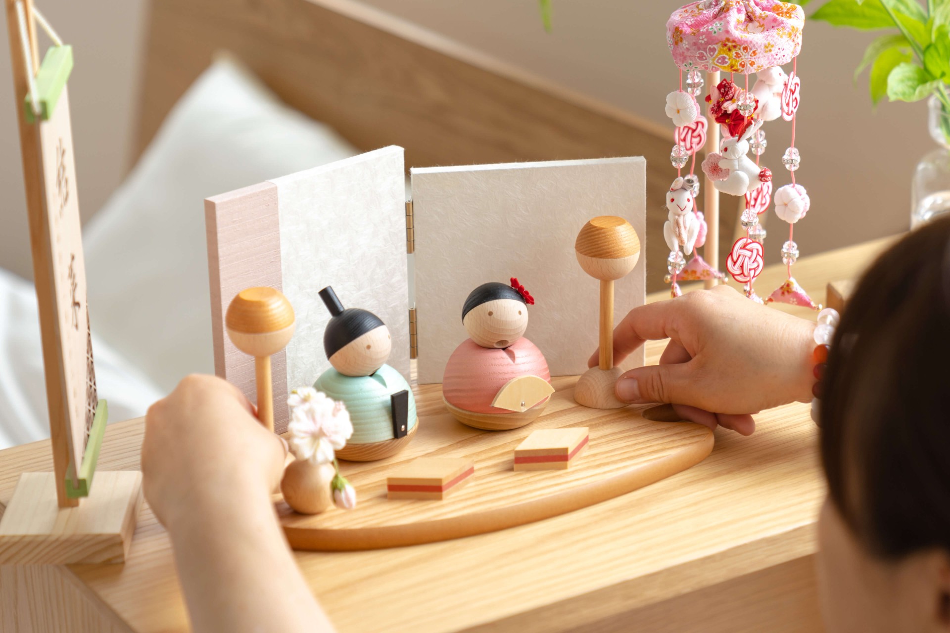 木製の雛人形なら、安心してお子様に手に取っていただけます。