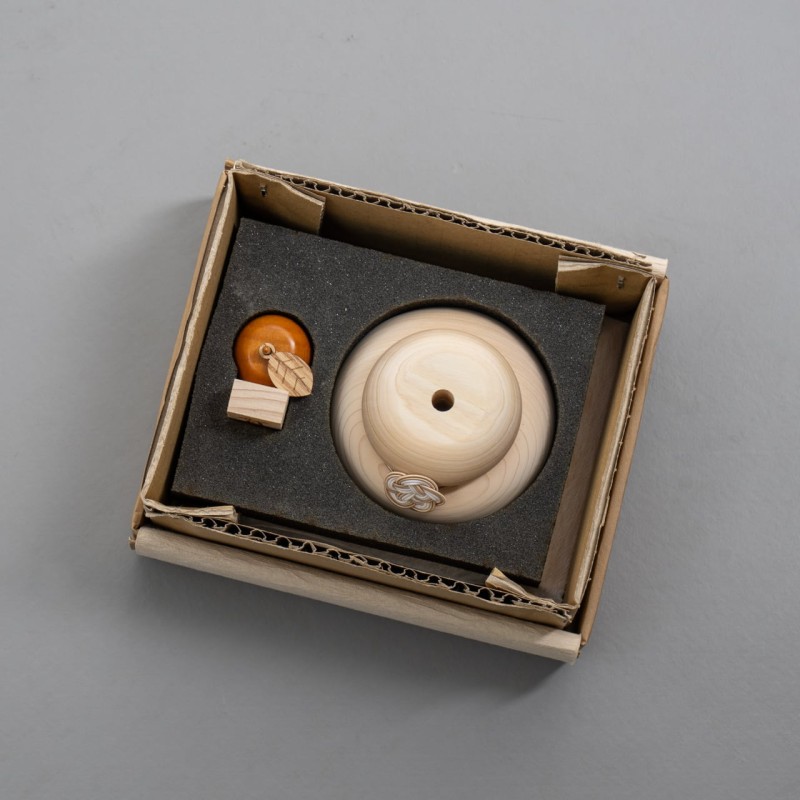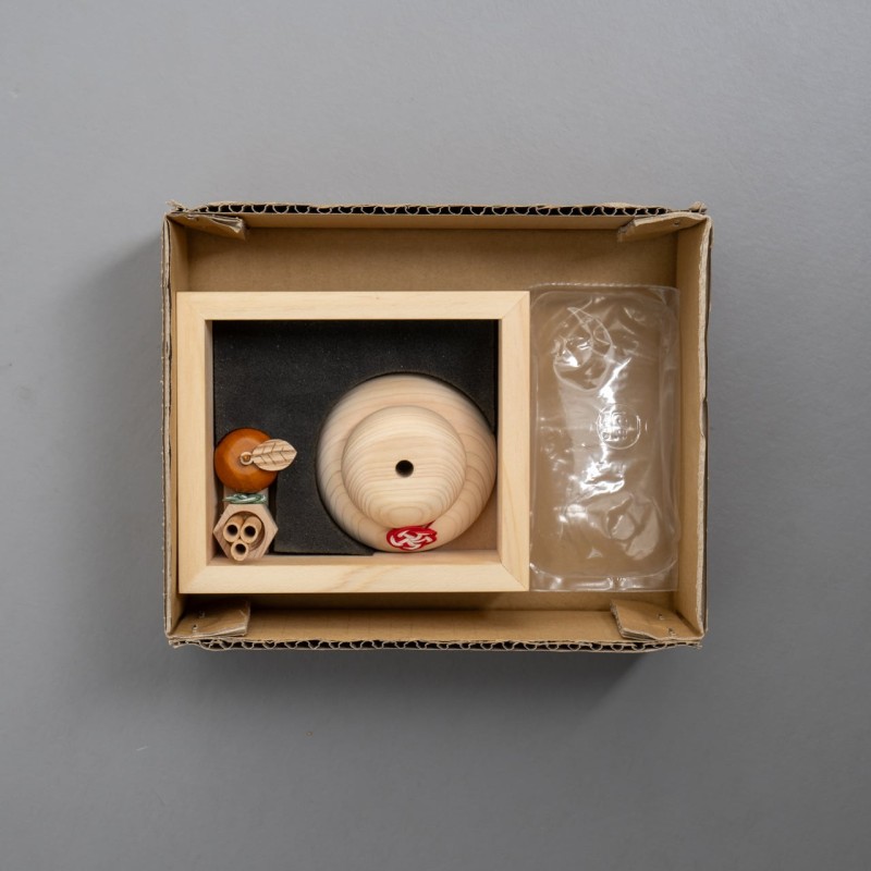 台座セットより一回り大きく、存在感のある三宝型。蓋付きの木箱にすっきり納まり、置いただけでしっかりした主役感があります。暮らしの中心空間に置いても、過度にならず静かな佇まい。