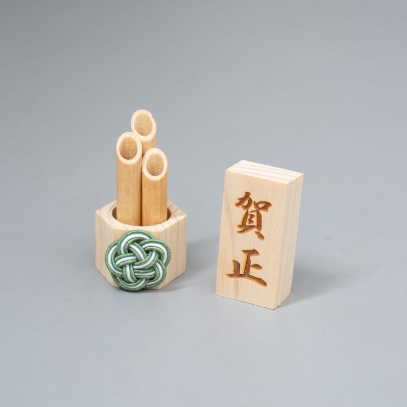 収納箱・鏡餅・立札・門松がセットになり、伝統的な意匠が端正に整うため、贈り物としても格が感じられます。