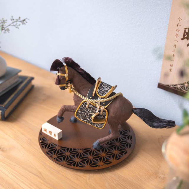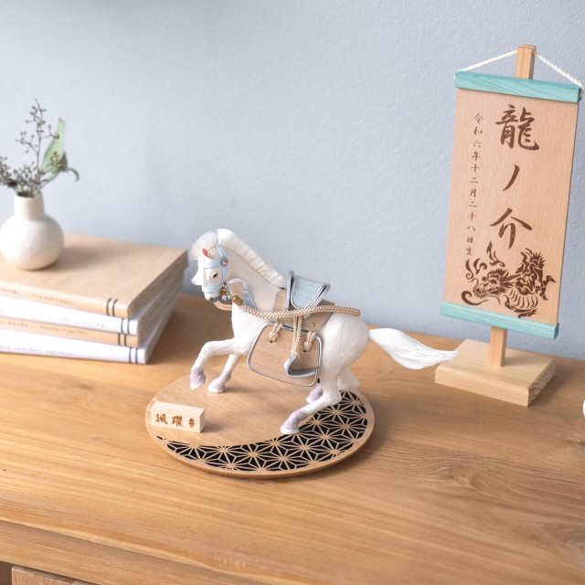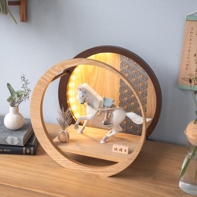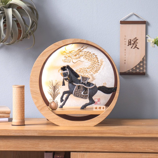 勝利や誇りの象徴でもあり、富や権力、出世の象徴のシンボルとされる馬を躍動感溢れる姿で表現した「ことの颯躍」です。