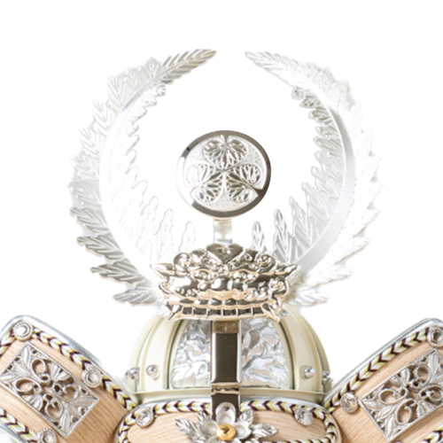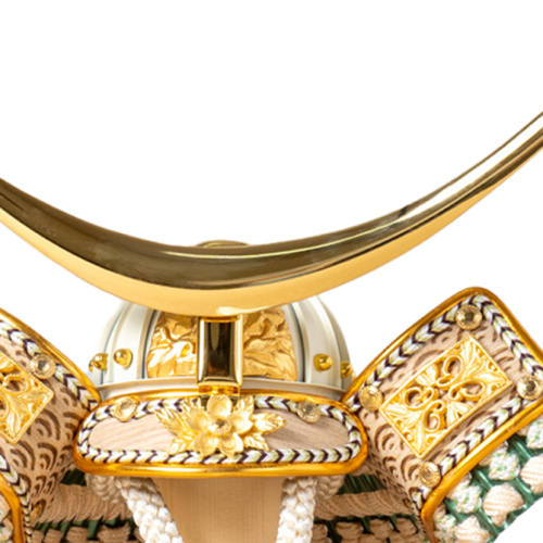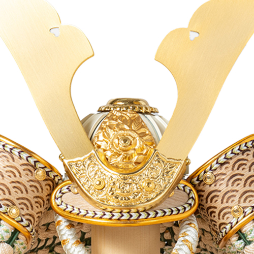 兜に付けられている鍬形はおせち料理にも出てくる慈姑(クワイ)の葉の形を模したもので、ポピュラーな兜の形になっています。「クワイ」という言葉が「加える」に似ていて、縁起が良いから兜に付けているのではないかと言われています。