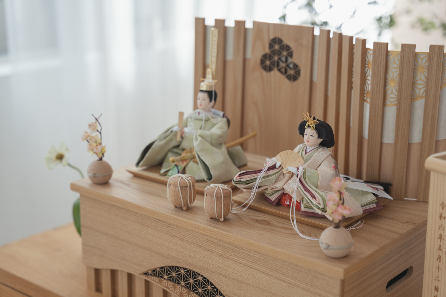 | モダン・シンプル系 | 無地背景+間接照明 | 木目込ひな・つぼみシリーズ |