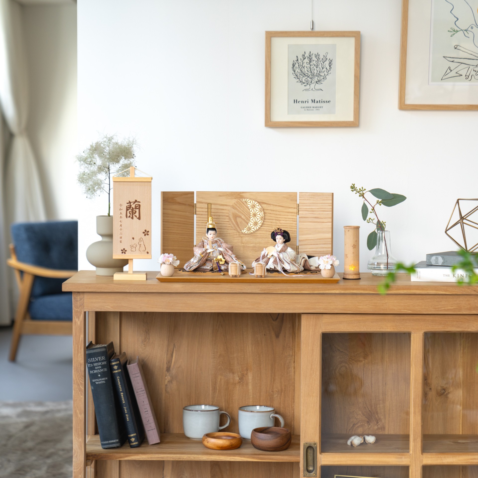 姉妹で親王飾り1セットを共有し、名前札やアレンジで個別感を出す