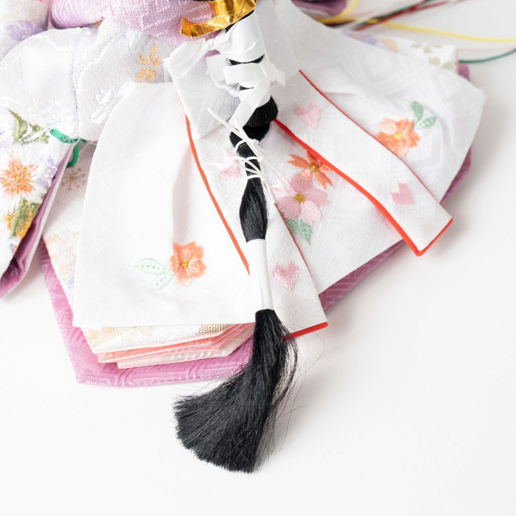 本物の素材や質感をお子様とご一緒に手に取って飾る体験をしてもらいたい為、あえて飾る手間を残したこだわりの雛人形です。ぜひ一度ご覧ください。
