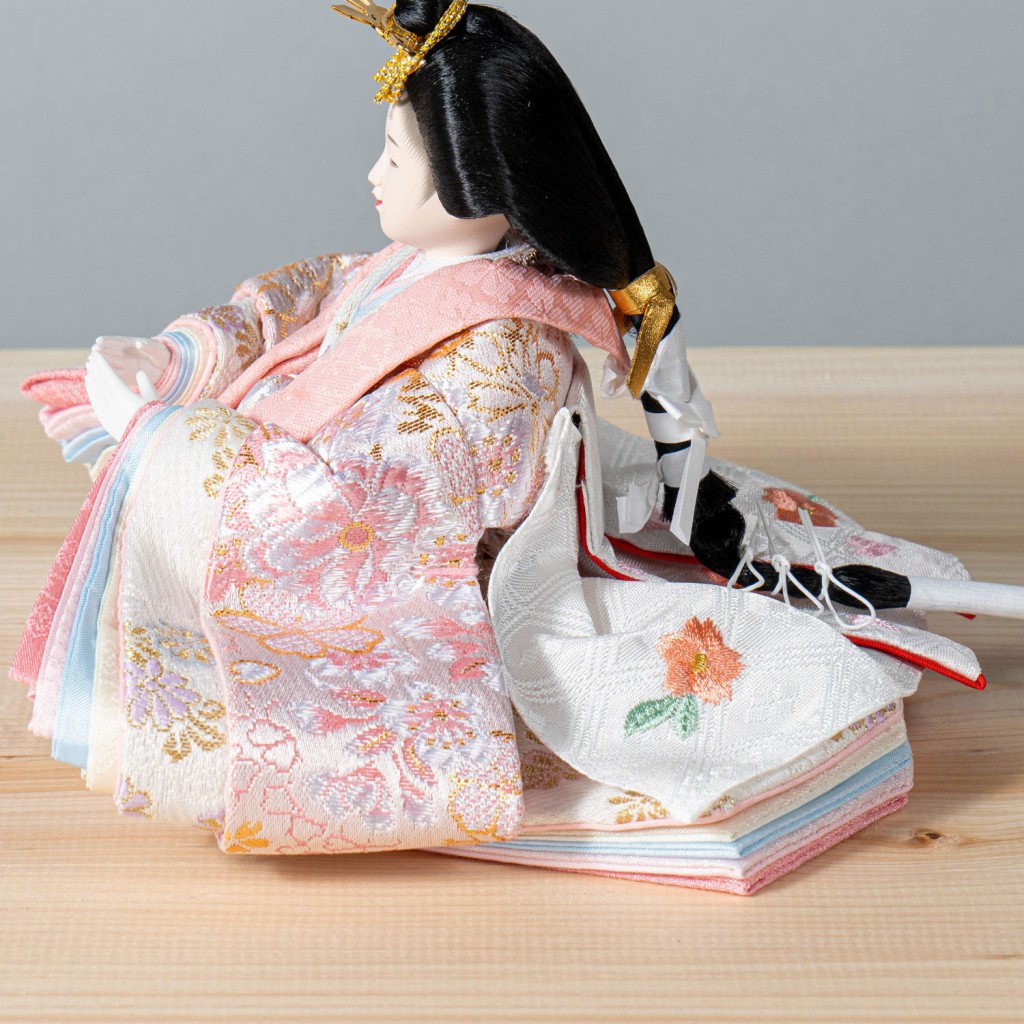 女雛の場合も取付け型と出し飾り型ではお人形の仕立てに違いが見られます。
