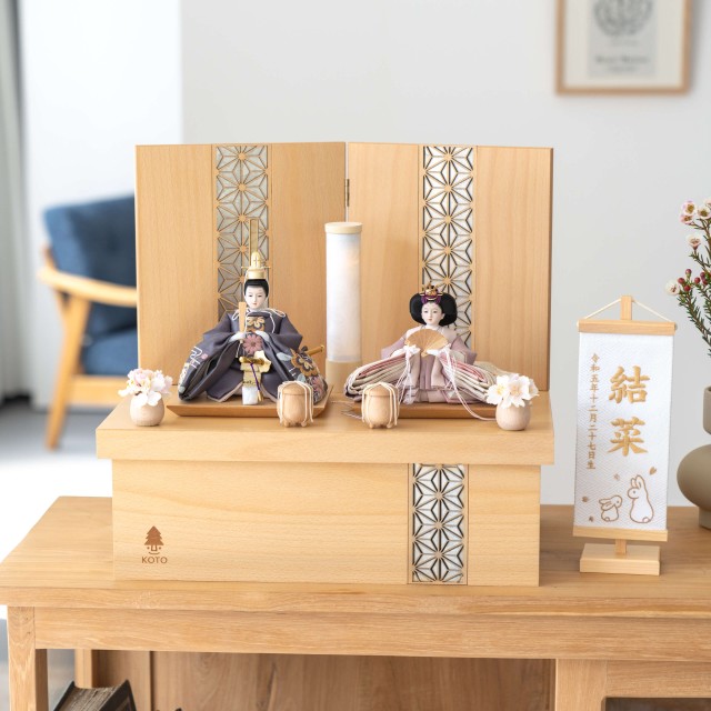 そんなコンセプトから生まれた、親しみやすく、お子様と一緒に飾れる「ことの雛人形」です。