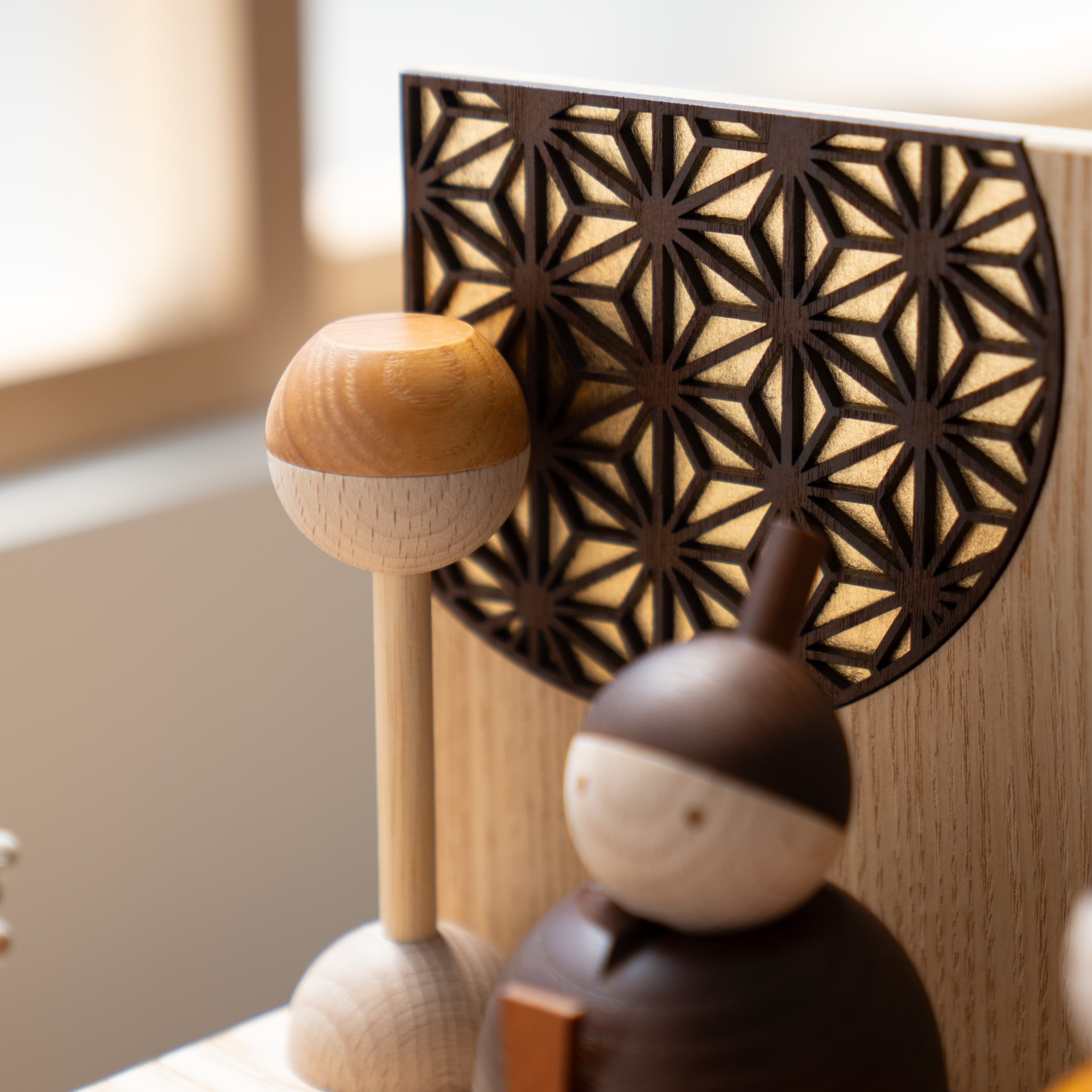 コンパクトな親王飾りでは、貝桶や嫁入り道具が省略されることもありますが、意味を知っておくと◎