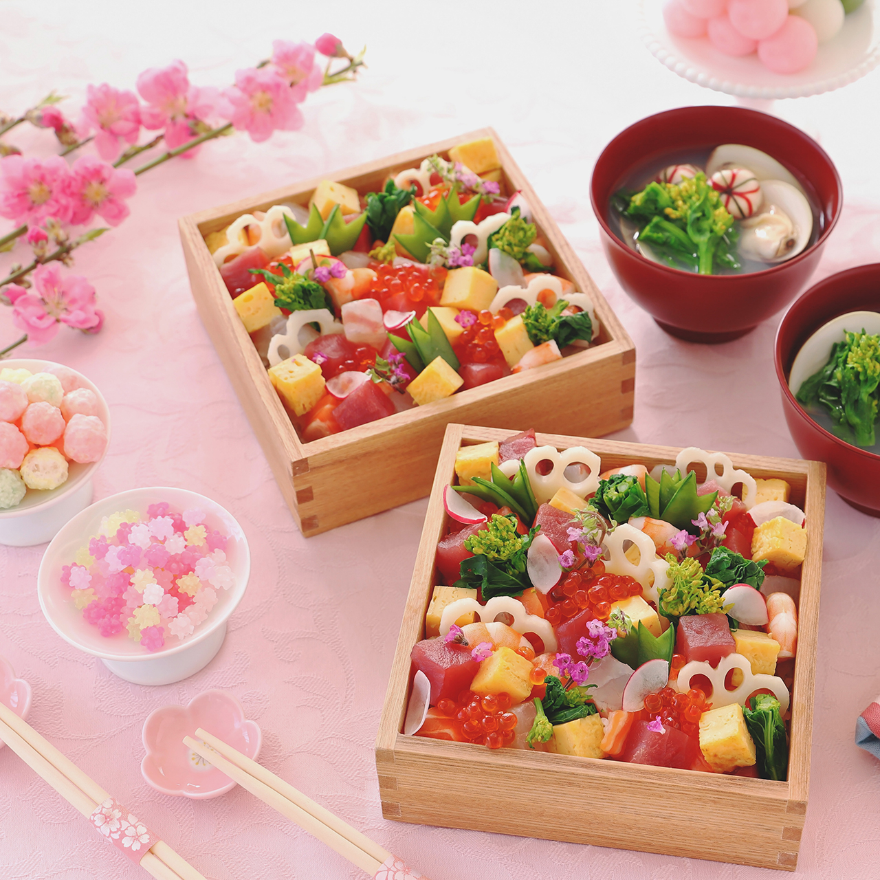 関東 ちらし寿司、はまぐりの吸い物、ひなあられ