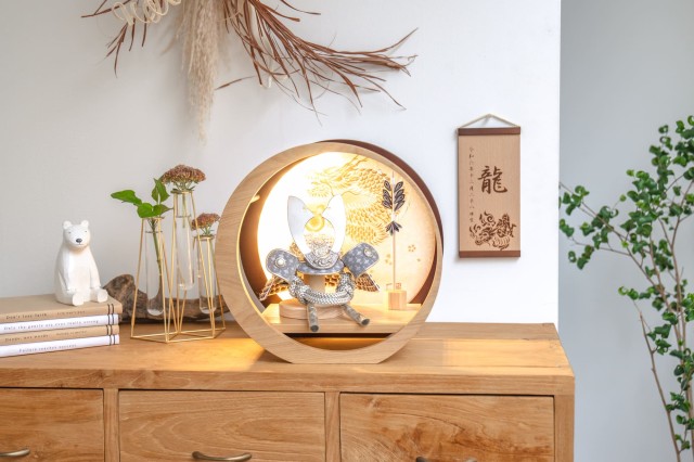 てづくり工房「木都」の職人が、伝統工芸の技術と天然木の素材を活かし、真心込めて1つ1つ丁寧につくりました。伝統的な兜と、勝利や誇りの象徴でもあり、古くから富や権力、出世の象徴のシンボルとされる馬を組み合わた、躍動感溢れる「ことの颯躍セット」です。