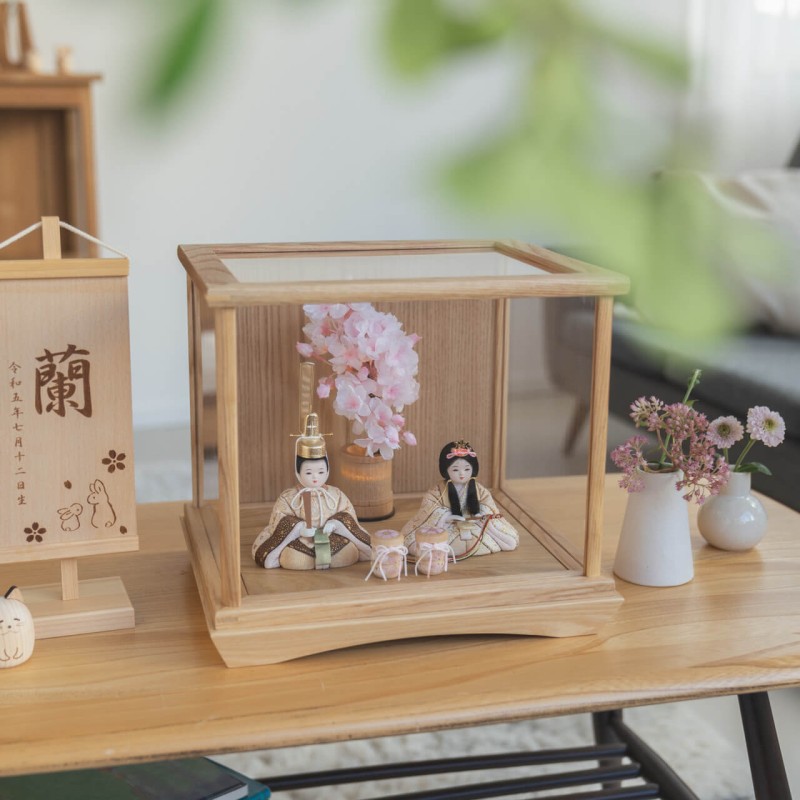 飾り棚やニッチの中にぴったり収まるケース入り雛